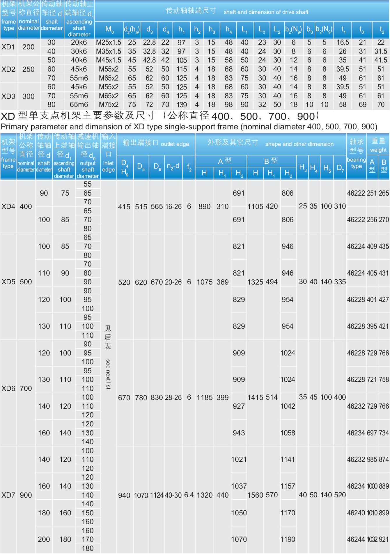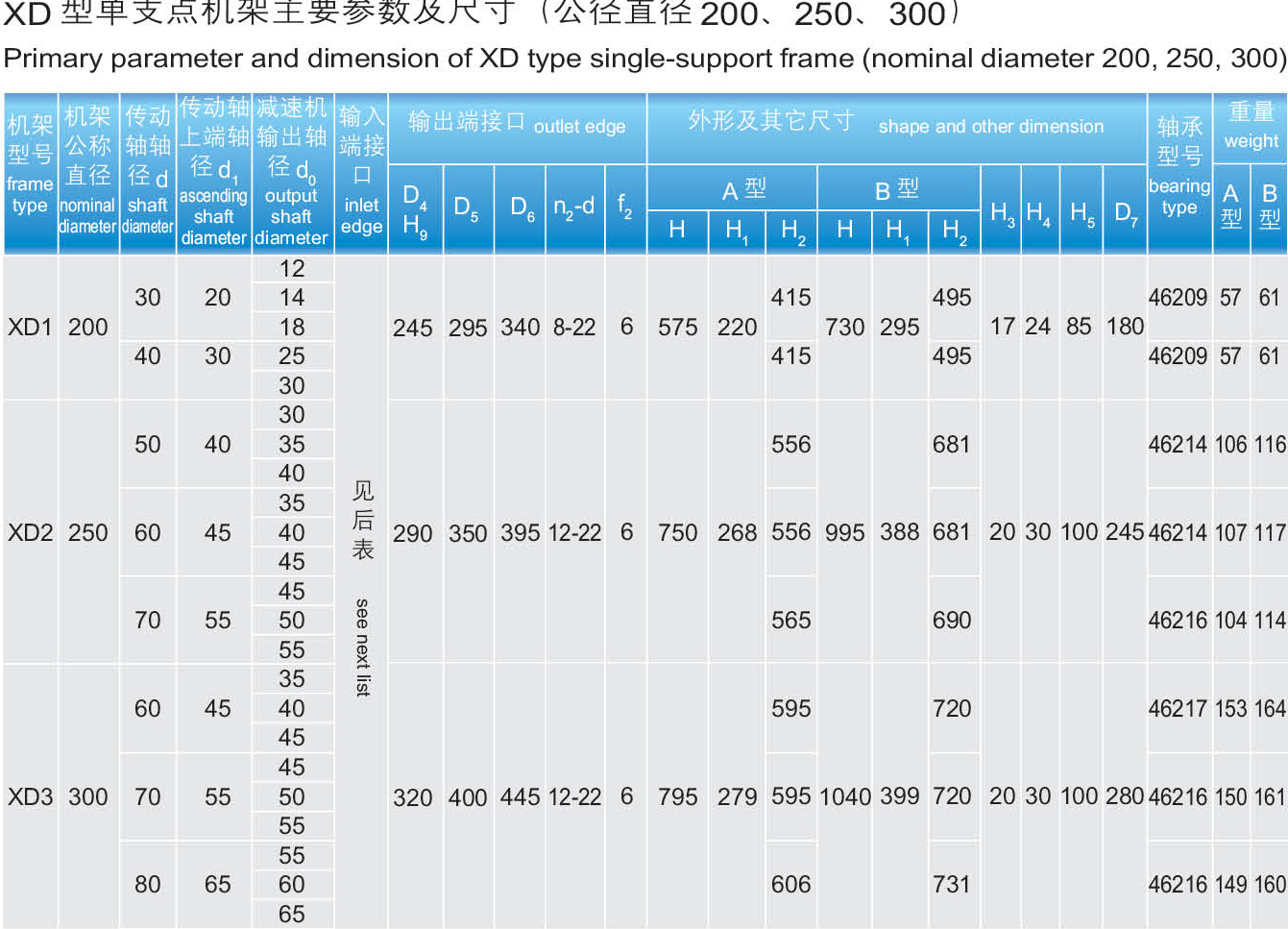 本系列机架是化工行业最新标准机架,是为搅拌传动装置(HG21563-95)配套的机架XD型为单支点机架,减速机出轴用DF型联轴器与搅拌轴联接。XS型为双支点机架,减速机出轴用HL型联轴器联接,两支点间用DF型联轴器联接,机架分A型(轴封采用20012003、2004、2006型机械密封)和B型(轴封采用2002、2005、2007型机械密封或506、516、606、616型填料箱)。机架输出端接口可与第部分(二)节所列的安装底盖及釜口法兰联接。本系列机架通用性强,由于选用DF型联轴器及安装底盖的搁轴装置,所以在不拆除减速机和机架的条件下,在机架的侧面窗口中就可以拆出带短节联轴器、轴承室及机械密封或填料箱。